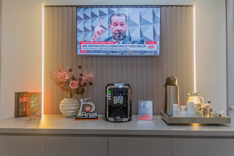Café, água e chá à vontade, sem custo adicional
